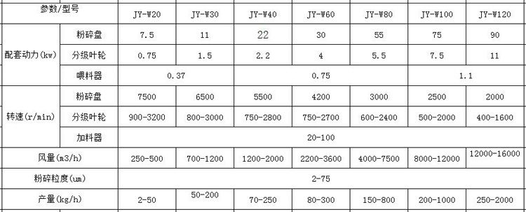 JY-W系列超微粉碎機適用范圍:
