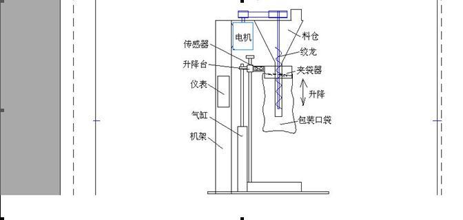 三.包裝袋內的物料重量時刻被稱重儀表測量,機構的升降動作由儀表安照重量變化程序控制.