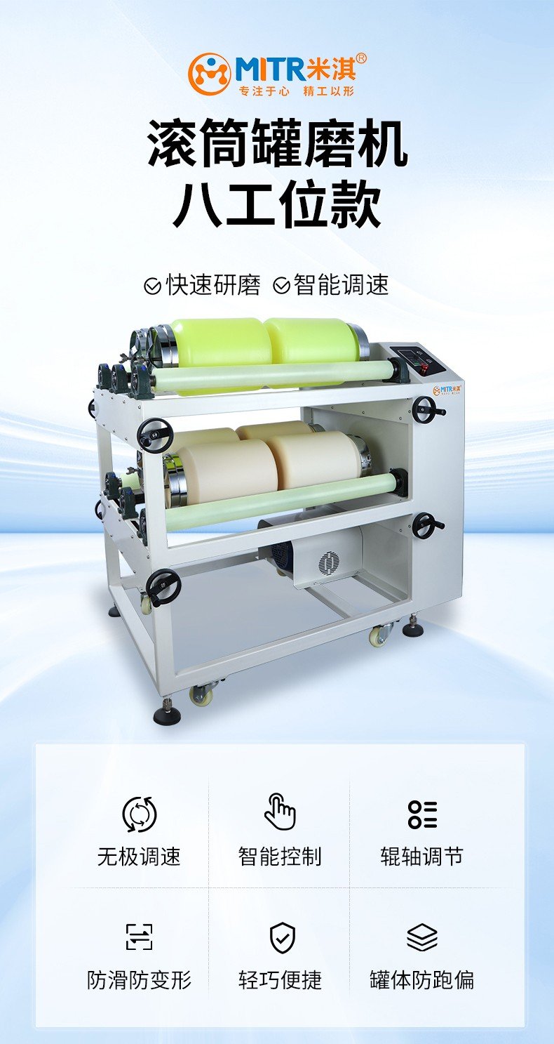 無極調速 智能控制 防滑防變形 輕巧便捷 輥軸調節 罐體防跑偏