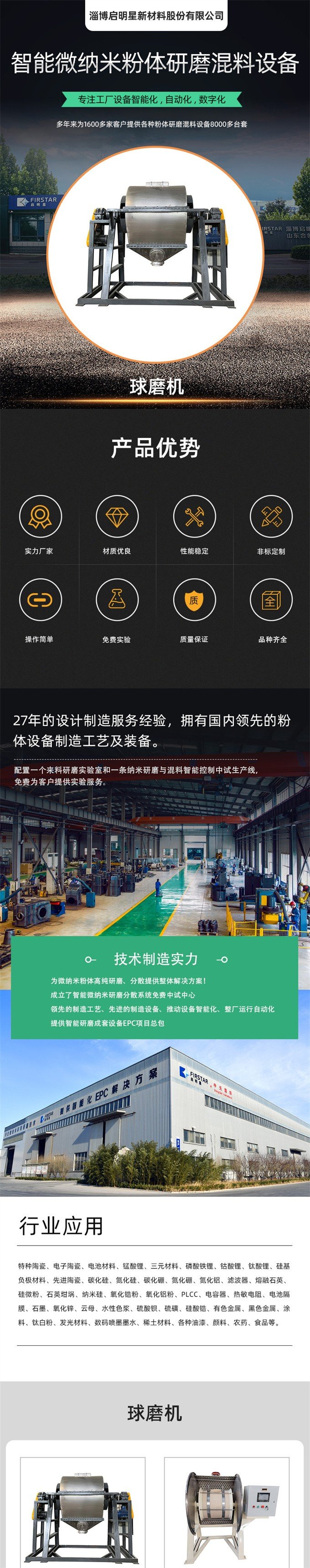 淄博啟明星新材料股份有限公司自主研發生產QPM球磨機主要應用于電子、陶瓷、新型材料等對生產環境要求嚴格、填充量小的工況。 本機為皮帶傳動方式,節能、無噪音、易維修維護,配定時電控柜和不銹鋼料球分離網,為聯體結構。