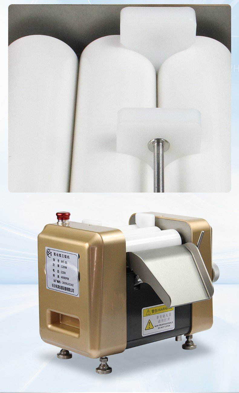 三輥研磨機簡稱三輥機,三輥研磨機可分為實驗三輥研磨機和生產三輥研磨機兩種。三輥研磨機適用于油漆、油墨、顏料、塑料等漿料的制造。三輥研磨機工作原理: 三輥研磨機通過水平的三根輥筒的表面相互擠壓及不同速度的摩擦而達到研磨效果。 三輥研磨機是高粘度物料***的研磨、分散設備。