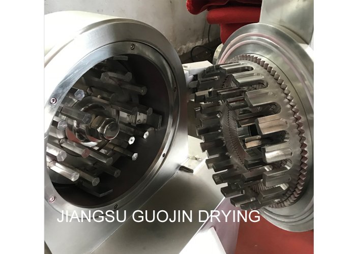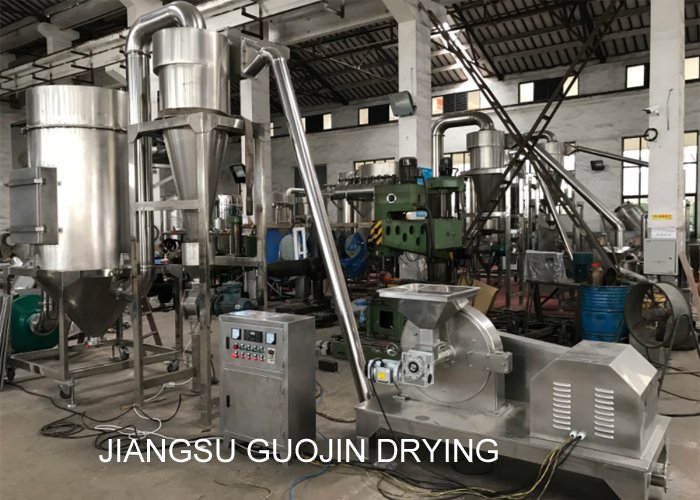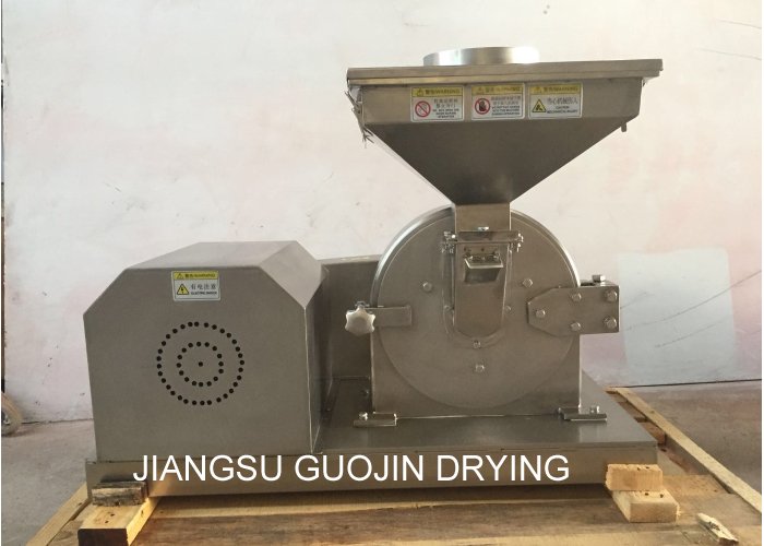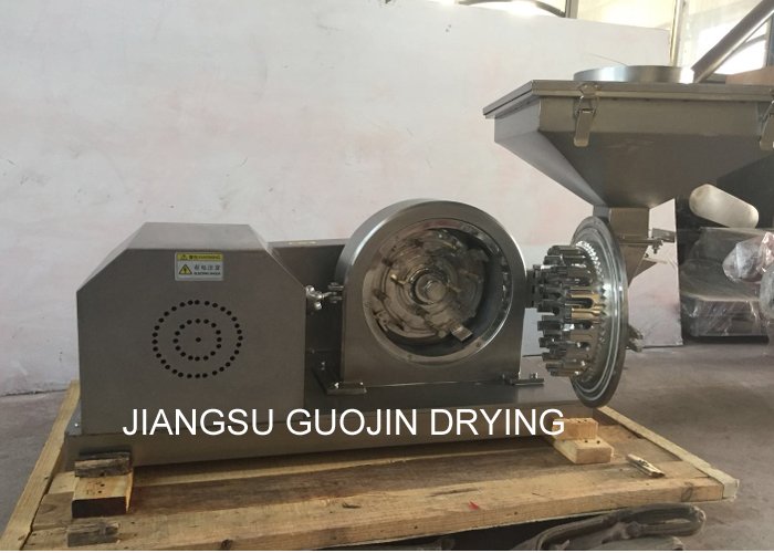 本機采用了風輪式高速旋轉刀,定刀進行沖擊,剪切,研磨,不但粉碎效果好,而且粉碎時機腔內產生了強力的氣流,把粉碎室的熱量和成品一起從篩網流出,粉碎細度可更換篩網來決定。