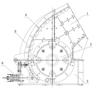 1.襯板部件 2.轉子部件 3.機架部件 4.破碎板部件 5.反擊板部件 6.調整裝置
