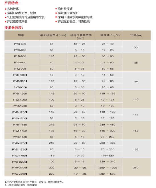 本機結構緊湊,生產效率高。采用碗型軸承具有較高的精度儲備,并采用集中稀油潤滑系統和新穎的干油密封防塵系統,當不能破碎物料進入破碎腔時,彈簧安全裝置能保護設備不受損壞,通常采用在二級破碎、三級破碎中。適用于破碎中等以上硬度的各種礦石和巖石 ,如鐵礦石、銅礦石、石灰石、石英、花崗巖、砂巖等。標準型適用于中碎,中型,短頭型都使用于細碎,廣泛應用于選礦、建材、水利、化學工業等領域。
