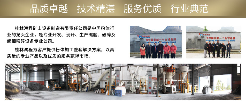 螢石礦干磨機制造廠家桂林鴻程礦山設備制造有限責任公司是中國粉體設備行業的知名企業,是中國專業的粉磨裝備整體解決方案提供商。公司主要從事各種粉體設備以及整套制粉生產線的專業開發、設計、制造和銷售。鴻程擁有各項**30余項,具有自主出口權,通過ISO9001:2008國際質量管理體系認證,是高新技術企業。桂林鴻程憑借幾十年的制粉設備制造和研發經驗,成為國內主要的粉體設備制造企業和出口基地