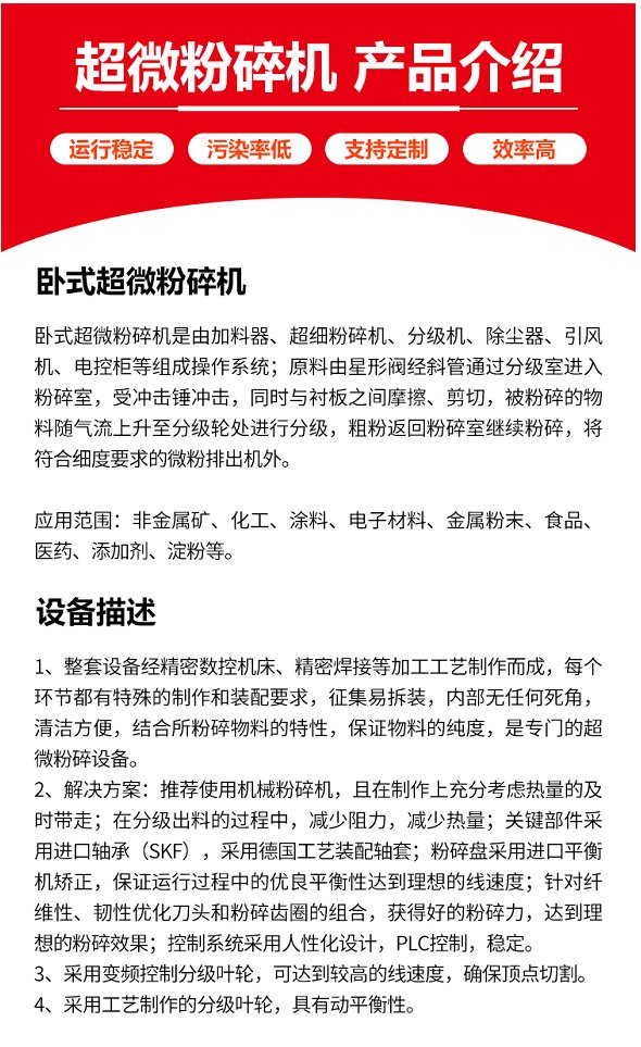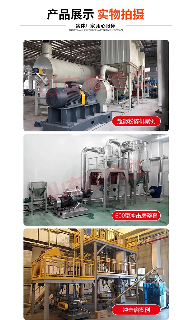 物料由加料系統均勻的送入粉碎室,受到高速旋轉的粉碎動盤的強烈沖擊,同時在靜盤、齒圈之間受到摩擦、剪切、碰撞等多種綜合力的作用,使物料粉碎,據物料性質不同,粉碎動盤與靜盤可采用不同結構形式的組合,用來滿足不同物料的粉碎需求。