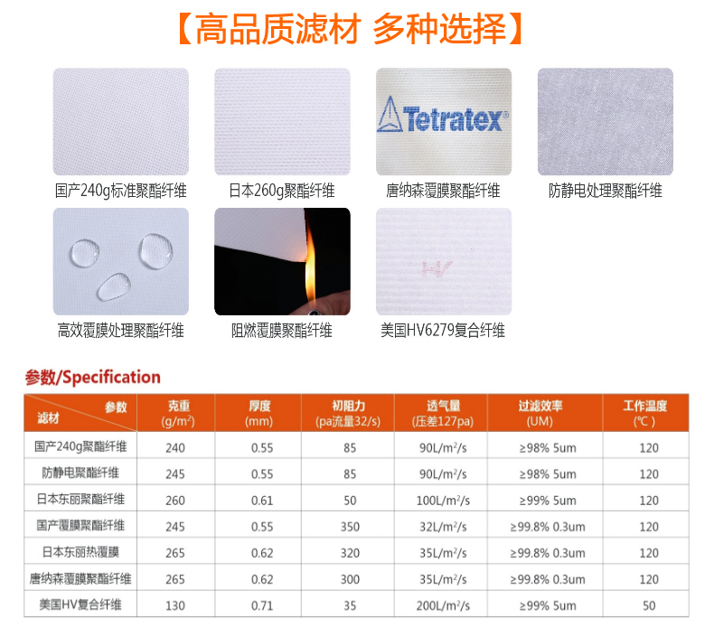 濾材:國產聚酯纖維濾材 可選國產覆膜濾材 進口濾材