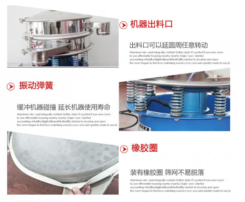 旋振篩是一種高精度細粉篩分機械,其噪音低、效率高,快速換網需3-5分鐘,全封閉結構,適用于粒、粉、粘液等物料的篩分過濾。旋振篩是由直立式電機作激振源,電機上、下兩端安裝有偏心重錘,將電機的旋轉運動轉變為水平、垂直、傾斜的三次元運動,再把這個運動傳遞給篩面。調節上、下兩端的相位角,可以改變物料在篩面上的運動軌跡。