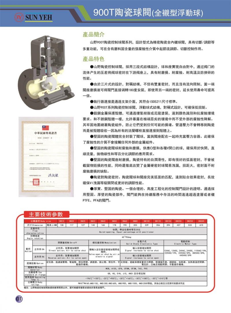 山野900T陶瓷控制球闀系列,設(shè)計(jì)型式為精密陶瓷全內(nèi)襯球同,具有切斷/調(diào)節(jié)等多重功能,可在含有磨料固含量的強(qiáng)腐觸性介中起節(jié)流調(diào)節(jié)、切斷控制作用。