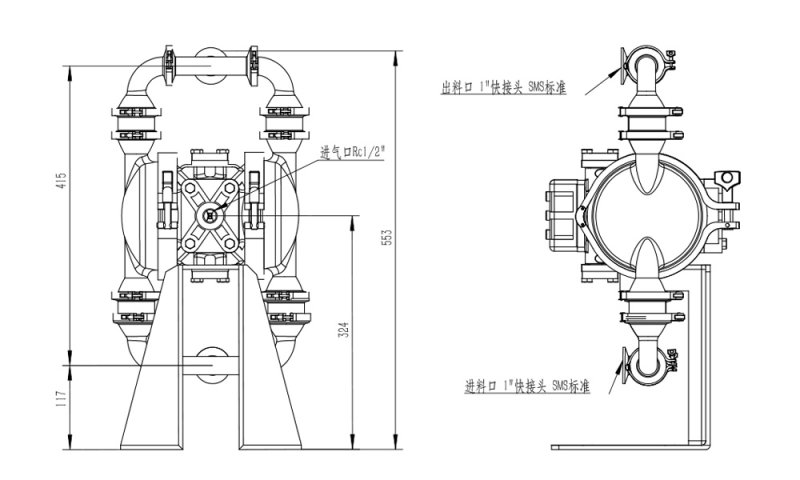 進出料口快接結構,泵體卡箍連接,易于安裝拆卸、維修方便