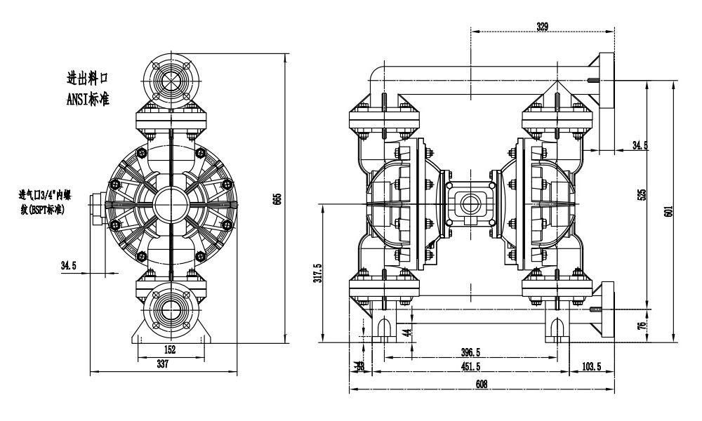 | ANSI DIN(Flanged) | 1.29L(0.34gal) *1 cycle=2 strokes |