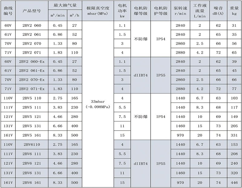 2BV系列水環(huán)式真空泵性能參數(shù)表 | |
