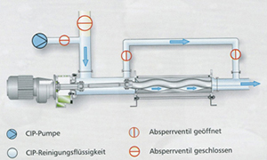 | 在線清洗(CIP)/蒸汽消毒(SIP)工藝 按照 CIP 程序為了使清洗液在整個系統中達到 1.5 m/s,NEMO? 食品衛生與清潔無菌泵沿切線裝有附加清洗裝置,且必需配有旁路管道。SIP 工藝同樣需要旁路管道。NEMO? 泵可同步運行 CIP 和 SIP 工藝。由于帶有切向沖洗裝置,NEMO? 泵可將介質排空。輸送介質均適用于 CIP 和 SIP 工藝。 |