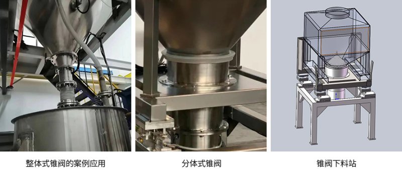 錐形閥是我司自行設(shè)計、開發(fā)研制的一種高效粉料出料閥,通過閥體與料筒間的錐形配合關(guān)系,實現(xiàn)閥的功能。錐形的配合關(guān)系可以精準(zhǔn)實現(xiàn)閥的密閉功能,且能通過軸向運動有效調(diào)整閥的開口尺寸,以實現(xiàn)閥開啟口徑變化的需要。該裝置可獨立運行,也可與生產(chǎn)線組合,實現(xiàn)自動化運行。該裝置具有功能全、結(jié)構(gòu)緊湊、技術(shù)性能穩(wěn)定、耗電省、適應(yīng)范圍廣、不產(chǎn)生粉塵污染等特點,廣泛適用于化工、醫(yī)藥、食品、新能源等各個行業(yè),是實現(xiàn)自動化控制的理想控制閥。