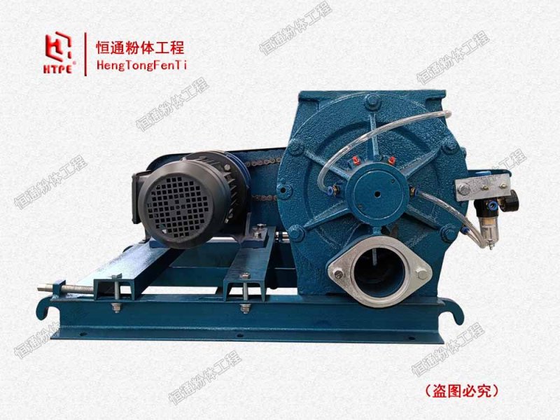 通常的旋轉供料器結構是帶有數個葉片的轉子在圓筒形的機殼內旋轉,從上部料斗落物料,充塞在葉片間的空格內,隨葉片的旋轉到出料口而卸出,機體側面設有均壓排氣口,可將葉輪回轉帶來的高壓氣體從此排走,減少氣體頂料現象,有利于物料的順利下落。對于壓送式、吸送式氣力輸送系統,它可以均勻而連續的向輸料管內供料;而在系統的分離、收塵部,它又具備卸料器、鎖氣器的功能;所以它的名稱也很多,像旋轉閥、卸料閥等等。