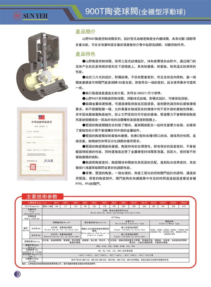 山野900T陶瓷控制球閩系列,設計型式為精密陶瓷全內襯球間,具有切斷/調節等多重功能