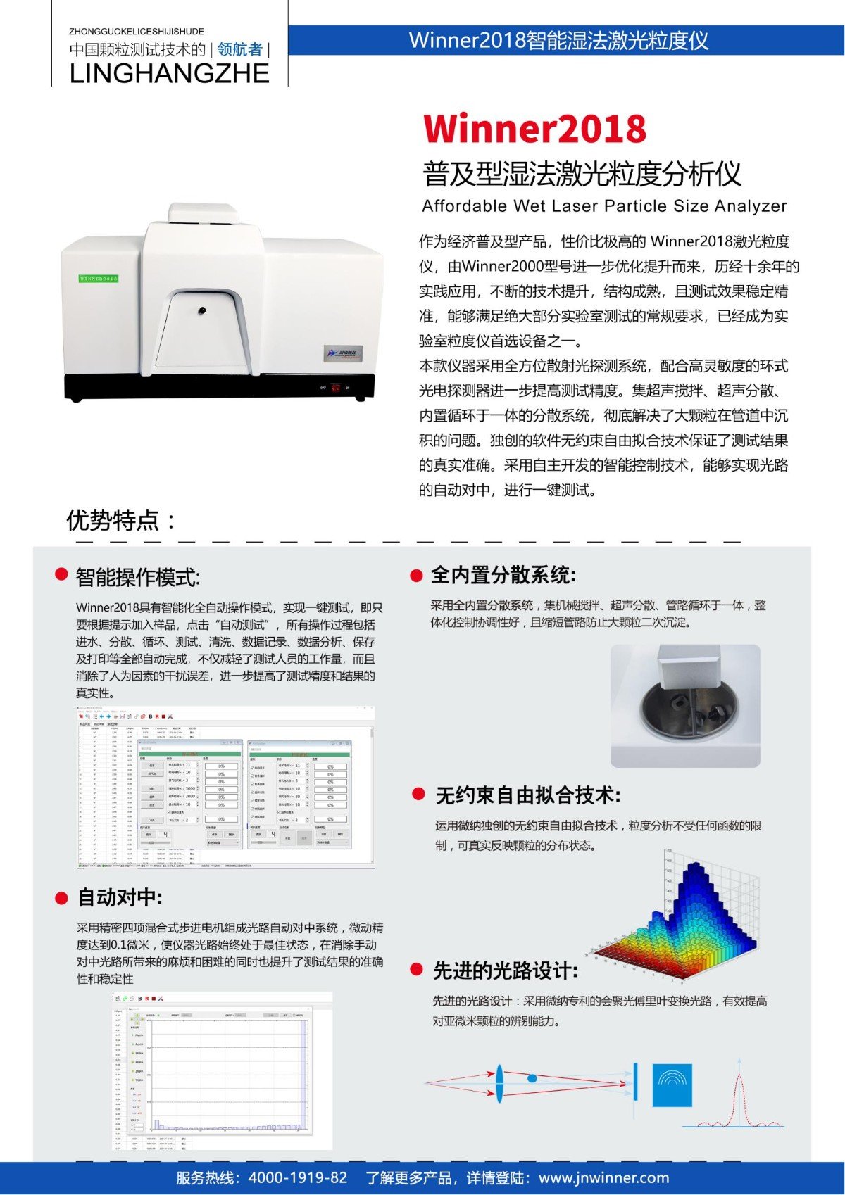 Winner2018是微納粒度儀研發的一款新型智能濕法激光粒度儀,儀器采用米氏散射理論,運用微納獨特的無約束自由擬合技術和智能控制技術,光路自動對中,測試速度快,測試數據準確。