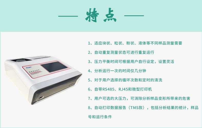 (1)適應塊狀、粒狀、粉狀、液體等不同樣品測量需要;