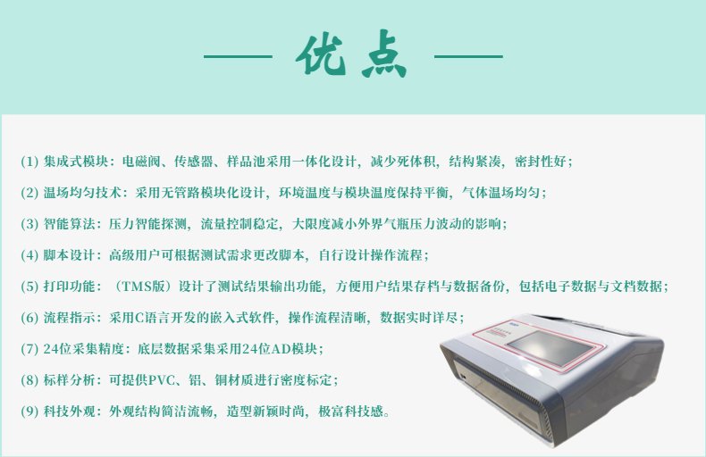表5 1全自動真密度分析儀可以測定的物理參數列表
