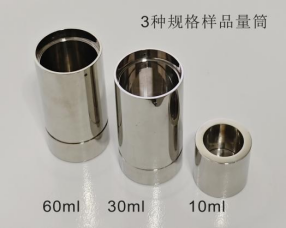 v 內(nèi)置標(biāo)準(zhǔn)100ml測試倉體固定測試區(qū),可根據(jù)樣品量和樣品形狀靈活選擇10ml、30ml和60ml的樣品量筒,供樣品分析檢測使用。