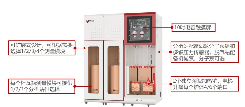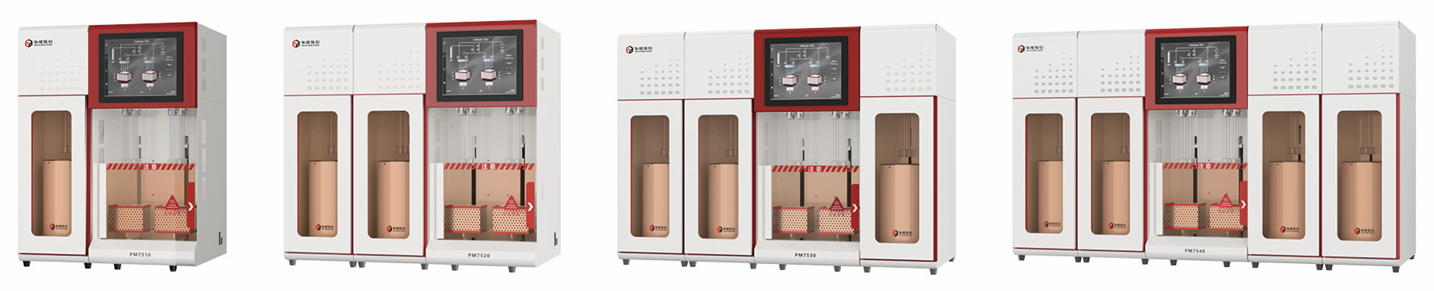 PhysiMaster 7500系列(PM7500)BET全自動擴展式微孔物理吸附儀配有獨立的8/12站式脫氣站,儀器可以提供1/2/3/4個杜瓦瓶供測量模塊供選擇,每個杜瓦瓶測量模塊1/2/3個分析站供選擇,測試軟件支持自定義壓力點個數和位置(吸、脫附壓力點個數*多可設1000個),提供多種數據處理模型。