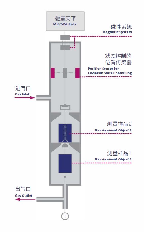 零點位置的去皮可確保長期穩定和漂移補償測量。選定測量點后,測量對象被提起,可通過微平衡檢測到相應的重量。測量對象可以是堆塌,內置樣品材料 (測量吸附等溫線/研究材料特性/分析催化等) 。測量對象也可以是具有標準體積的沉降片。在這種情況下,磁懸浮天平可用于對沉降片周圍流體進行高精度密度測量。RuboSORP磁懸浮天平是****的,因為它可以同時以**的精度和效率測量兩個樣品的質量。
