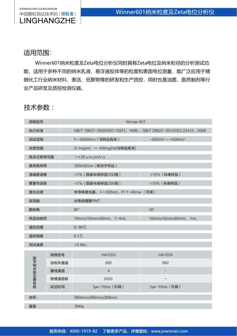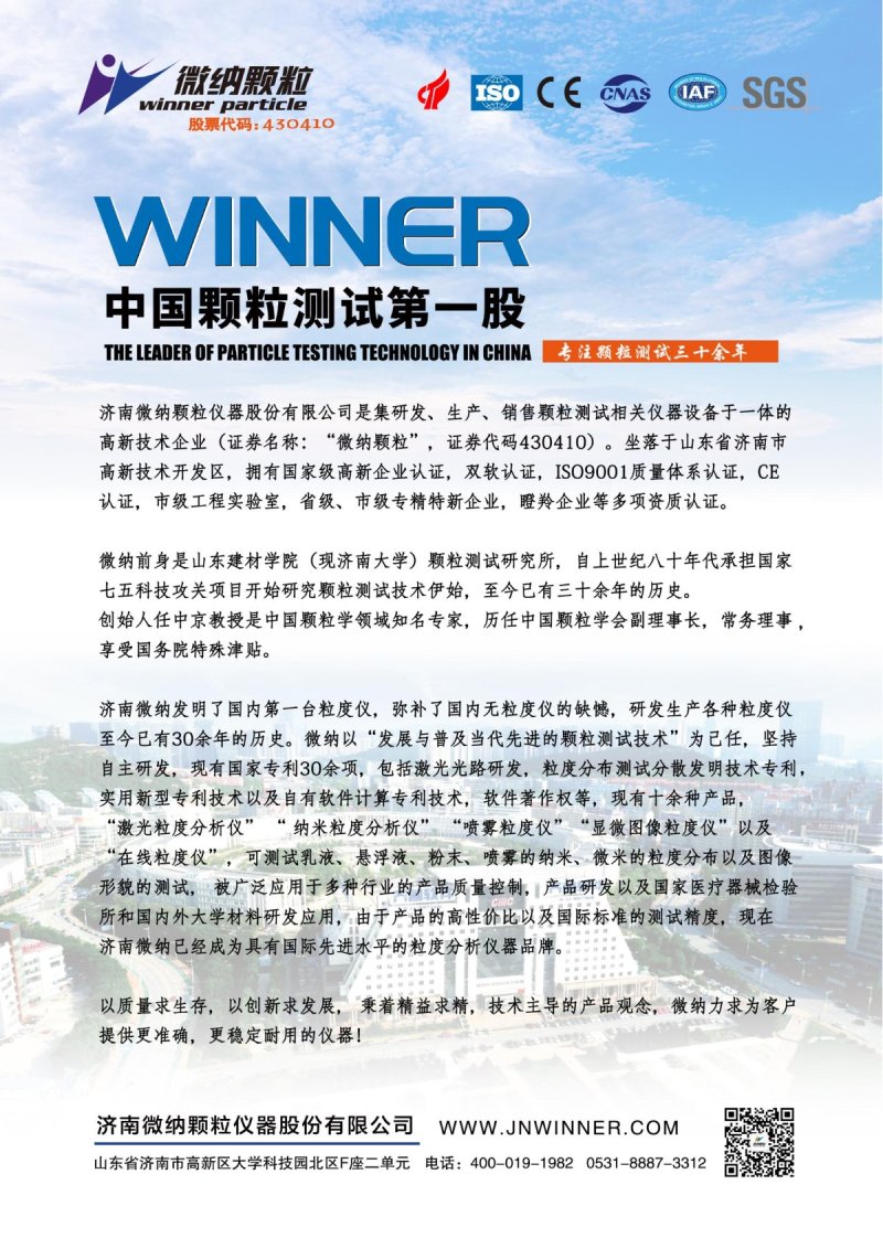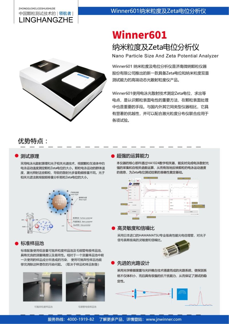 Winner601 納米粒度及電位分析儀是濟南微納顆粒儀器股份有限公司推出的新一款具備zeta電位和納米粒度雙重測試能力的動態光散射粒度儀產品。
