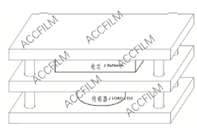 根據電芯實際使用時是束縛在模組內,測試驗證過程中為了模擬電芯在模組中狀態,避免電芯自由膨脹,并起到固定作用,一般都會使用夾具夾持并加載一定初始夾具力。具體有方式如下圖;