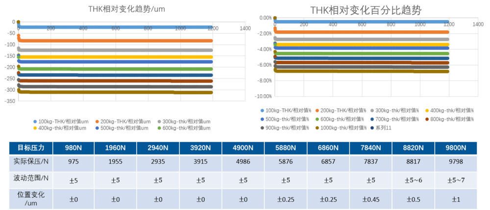 實際保壓都比目標壓力低2-5N,波動范圍都在±5左右(小于0.03%FS);