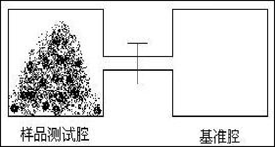 | ◆ 應用阿基米德原理--氣體膨脹置換法,利用小分子直徑的惰性氣體在一定條件下的玻爾定律(PV=nRT),通過測定測試腔內樣品所排開的氣體體積來精確測定樣品的骨架體積(含閉孔),從而得到其真密度,真密度=質量/骨架體積。 ◆ 氣體膨脹置換法是以氣體取代液體測定樣品所排開的體積. 此法可避免浸液法中由于樣品溶解造成的測試誤差,具有不損壞樣品的優點. 因為氣體能滲入樣品中極小的孔隙和表面的不規則孔隙,因此測出的樣品體積更接近樣品的骨架體積,從而可以用來計算樣品的密度,測試值也更接近樣品的真實密度。 ◆ 儀器的測試系統由測試腔和基準腔構成,如圖。 |