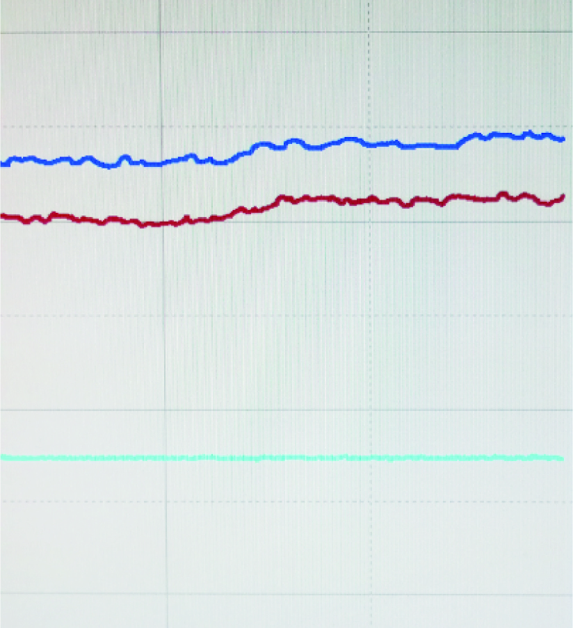 注:藍線為孚洛泰微波水分儀、紅線為紅外水分儀、淺藍線為水量