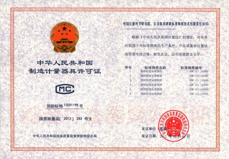 標準物質用途:電子顯微鏡、不同原理粒度儀,如激光衍射法粒度儀、動態(tài)光散射法粒度儀的檢定/校準工作