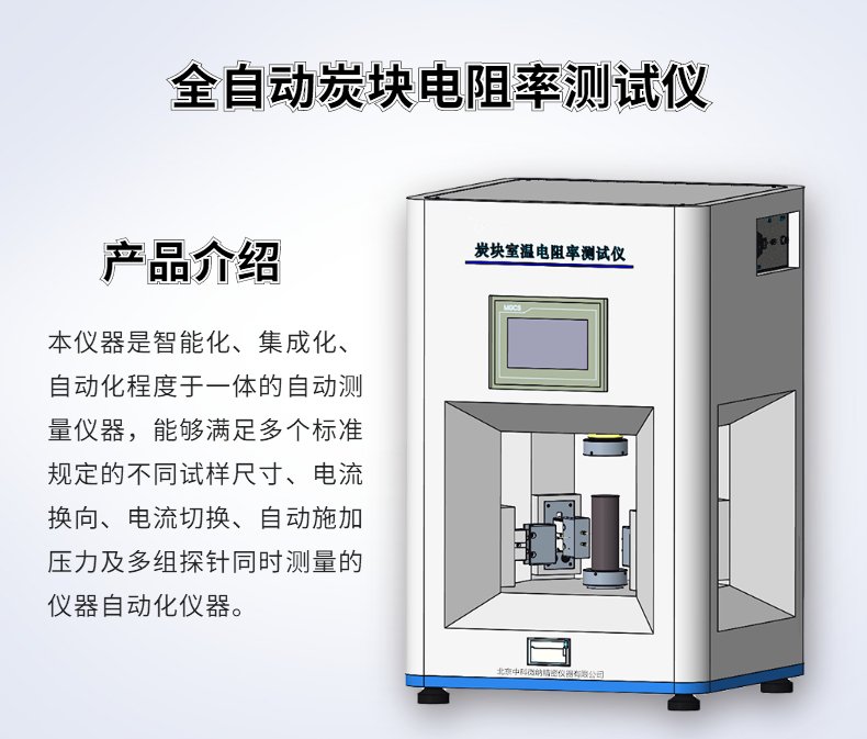 全自動炭塊電阻率測試儀主要用于測量炭素材料炭塊棒材電阻率的儀器.