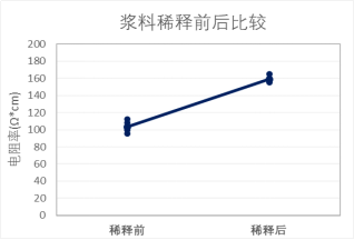 對于實驗應用案例1的漿料進行稀釋,稀釋前后漿料的電阻率明顯增大,導電性能降低,為后續漿料開發提供新的測量參數。