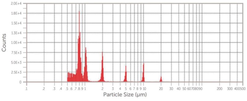 AccuSizer A2000采用單顆粒光學傳感技術,單個粒子通過狹窄的光感區(qū)時阻擋了一部分入射光,引起到達檢測器的入射光強度瞬間降低,強度信號的衰減幅度理論上與粒子橫截面(假設橫截面積小于光感區(qū)的寬度),即粒子直徑的平方成比例。用標準粒子建立粒徑與強度信號大小的校正曲線。儀器測得樣品中顆粒通過光感區(qū)產(chǎn)生的信號,根據(jù)校正曲線計算出顆粒粒徑。傳統(tǒng)光阻法的范圍下限一般到1.5μm。AccuSizer通過光散射增加對小粒子的靈敏度,將單顆粒傳感器的計數(shù)下限拓展至0.5μm