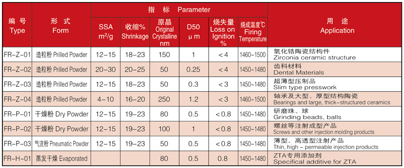 氧化釔穩定氧化鋯粉類別:(除3Y-PSZ外,其它需提前定制)