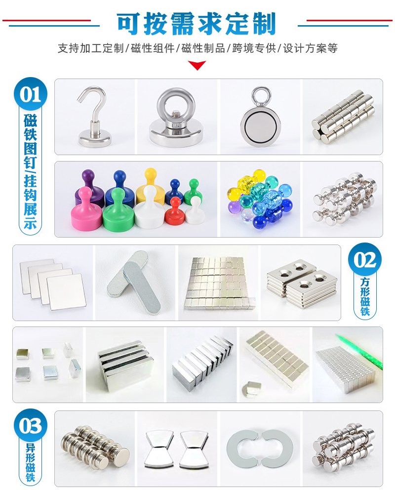 性價(jià)比高:異形磁鐵通常具有良好的機(jī)械特性,并且由于形狀的特殊性,可以在多種應(yīng)用場景中發(fā)揮出色的性能。