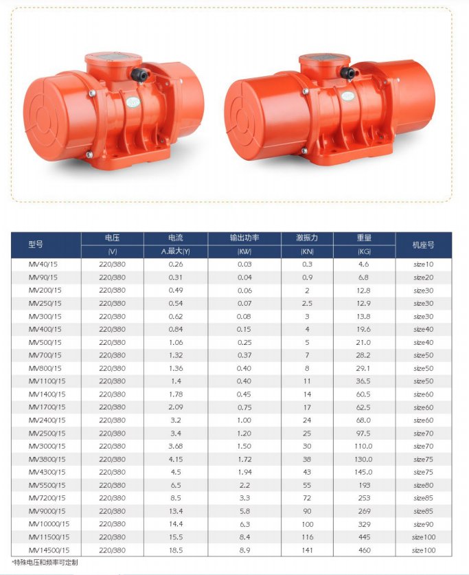 MV系列振動電機(jī)廣泛應(yīng)用于建筑設(shè)備,下料機(jī),沙石分離器,傳送帶,振動篩,料斗清倉等。