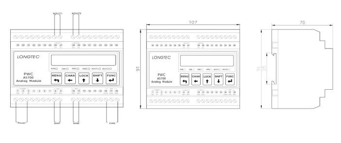 型號AS700-2AI2AO:2路模擬輸入、2路模擬輸出