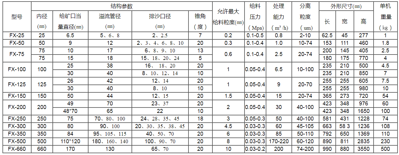 (6)礦漿在旋流器中滯留的量和時間少,停機時容易處理。