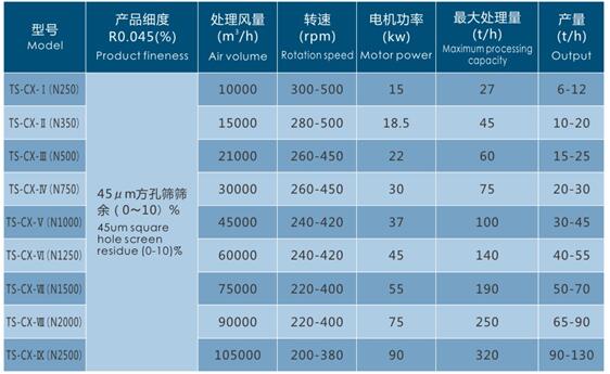 4、選粉機采用無級調速。細度調節方便,靈敏可靠,且調節范圍寬。