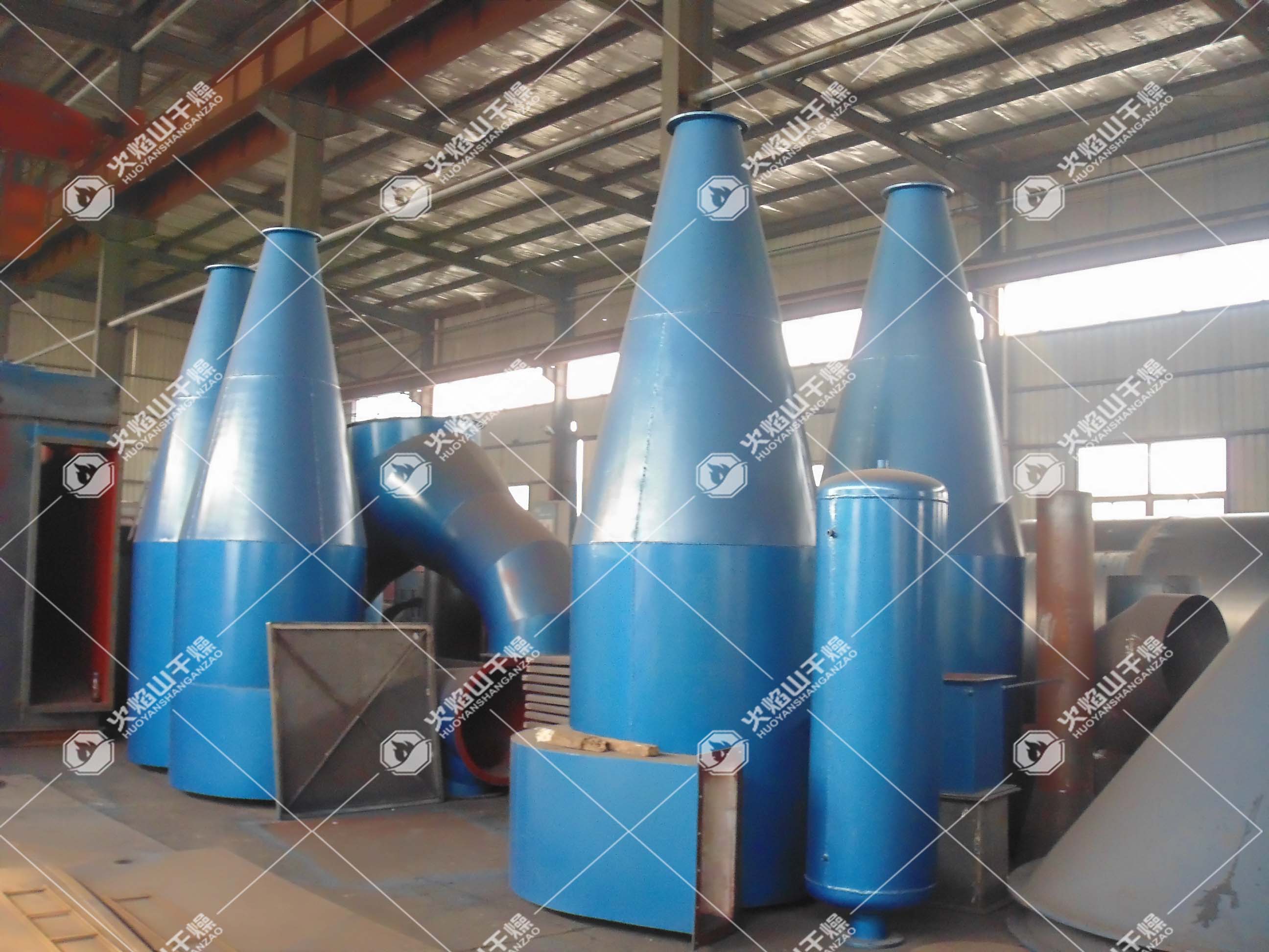 2、采用全旁路旋風(fēng)除塵器作為成品收集裝置,有較理想的氣、粉分離運(yùn)動(dòng),消除了普通旋風(fēng)除塵器的二次揚(yáng)塵現(xiàn)象,成品收集效率可達(dá)93%左右,而普通的旋風(fēng)除塵器成品收集效率為85%左右。