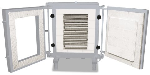 該型箱式爐專(zhuān)為各種不同的玻璃板如防火玻璃檢測(cè)而設(shè)計(jì)制造。除普通爐門(mén)外,爐膛前還裝有一個(gè)可旋轉(zhuǎn)門(mén)框,通過(guò)該門(mén)框可以將檢測(cè)玻璃遞送到窯爐內(nèi)。門(mén)框通過(guò)特殊的機(jī)構(gòu)固定在窯爐上。爐膛內(nèi)結(jié)構(gòu)平整。檢測(cè)爐通過(guò)安裝在陶瓷支撐管上的加熱絲進(jìn)行加熱。支撐管只安裝在爐后壁,產(chǎn)生的熱量將直接輻射到玻璃表面。由于爐膛容積非常小且加熱元件功率很高,該箱式爐的工作周期明顯縮短。