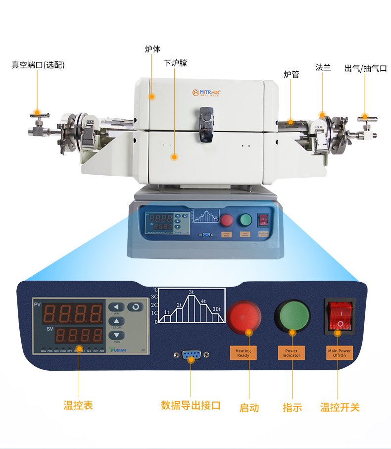 OTF-1200X-25-60、OTF-1200X-50-60是一款小型管式爐,其**工作溫度為1200℃,額定功率為1200W。爐管可配置為1" 或2"的高純石英爐管,爐管兩端已安裝一對不銹鋼法蘭(法蘭上已安裝機械壓力表、不銹鋼截止閥和寶塔嘴接頭)。此款設備允許樣品在真空和氣體保護下進行燒結。精確溫控系統包含了30段升溫和降溫曲線設置,其控溫精度達到+/- 1 °C。