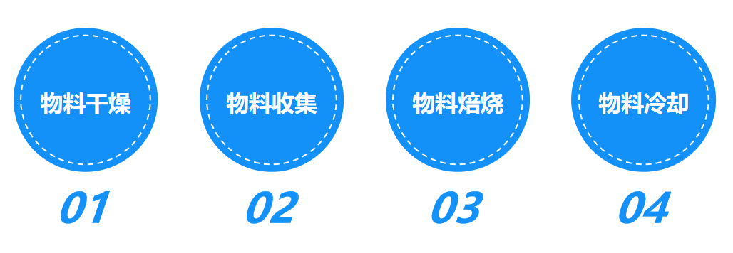1、物料干燥 2、 物料收集 3、 物料焙燒 4、物料冷卻