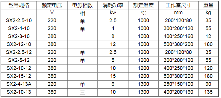 SX2型箱式電阻爐均系周期作業式節能電爐,升溫快,空載損耗小,爐溫均勻性好,供化學分析、物理測定,以及金屬、陶瓷的燒結、溶解、小型鋼件處理等加熱用。使用時爐溫需通過配套之溫度控制器進行測量、指示和自動控制。
