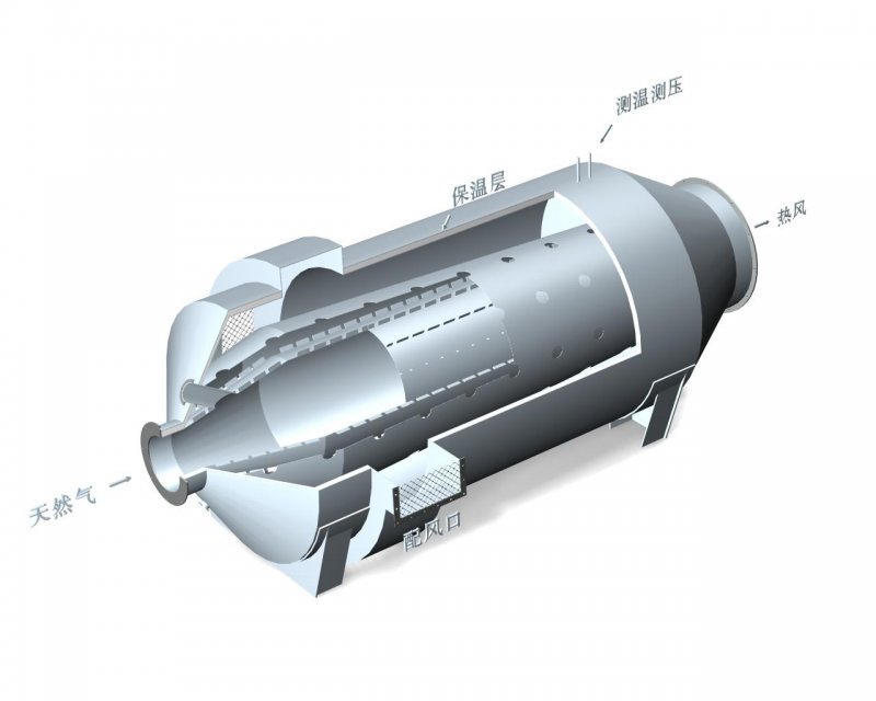 為了獲得高溫(500度以上)熱空氣,一般采用直火換熱。