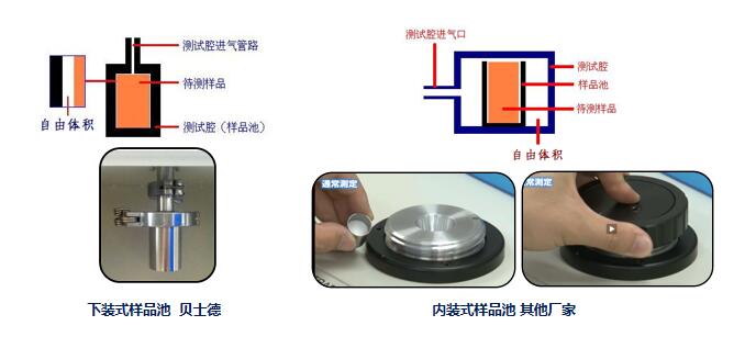 | ◆ 普通樣品池:圓柱狀樣品池適用圓柱狀樣品,采用正方體樣品,會存在很大空間,樣品池體積利用率不到50%,對于開閉孔率的測試影響非常大; | |