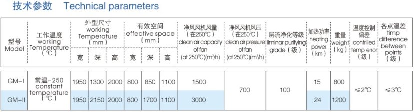 3. 內部循環熱風經高溫高效空氣過濾器過濾,保證了進入有效空間的熱風達到100級潔凈要求。