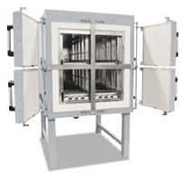 NA 500/45S強制空氣循環箱式爐,配有四個爐腔,每個均配有滾動傳送裝置和各自獨立的爐門